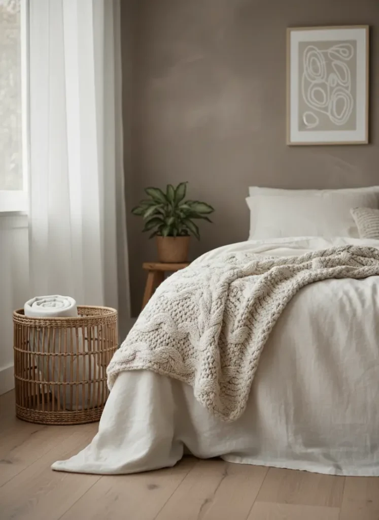 The secret to preventing a minimalist space from feeling stark and sterile is the masterful use of texture contrast. Layering various tactile materials adds rich visual depth and interest without the need for additional physical clutter. Try combining smooth linen bedding with a chunky knit throw blanket and placing woven rattan baskets in the corner for storage. These subtle textural variations create a rich, enveloping coziness that defines the perfect minimalist retreat.
