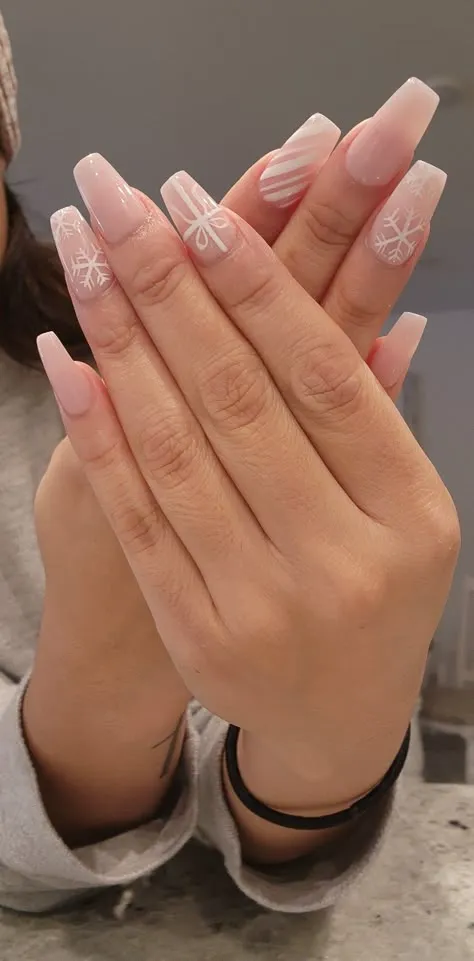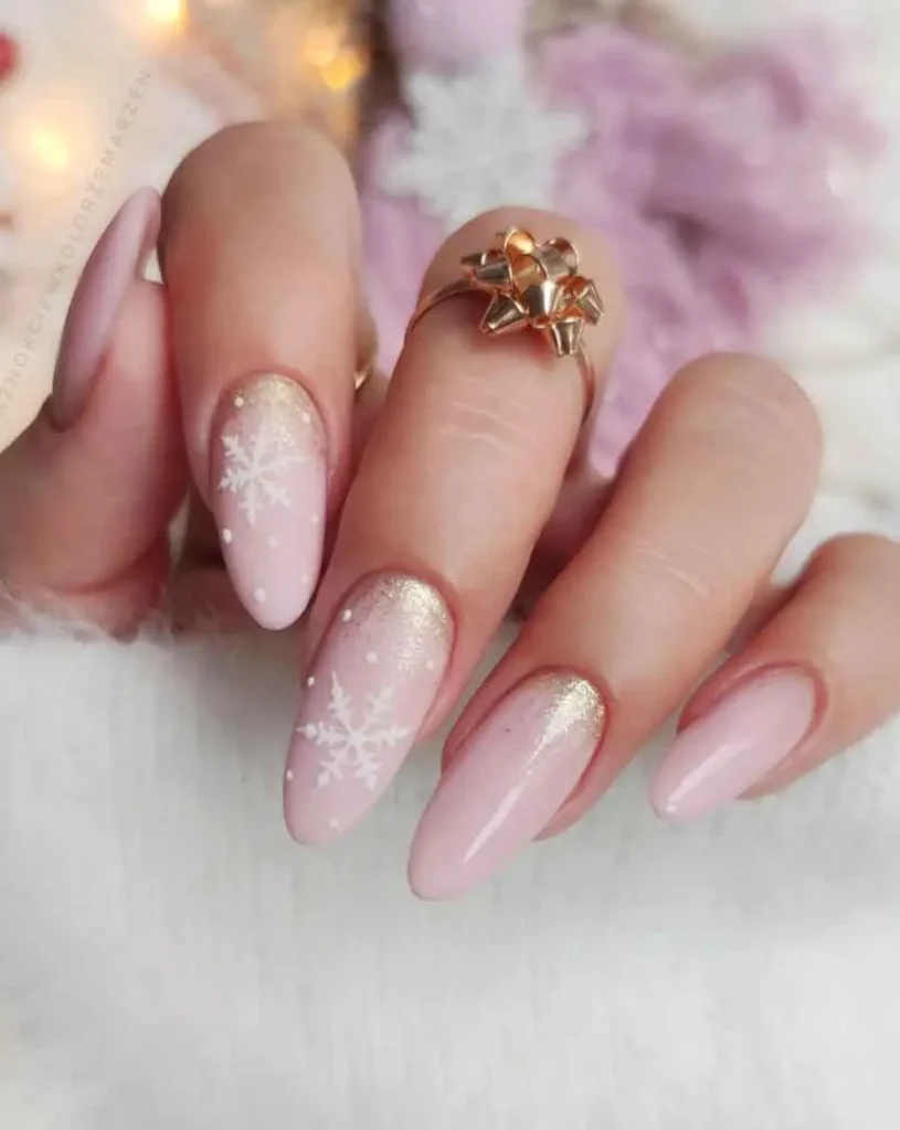 3. Light Pink Winter Nail Designs With Snowflake Art