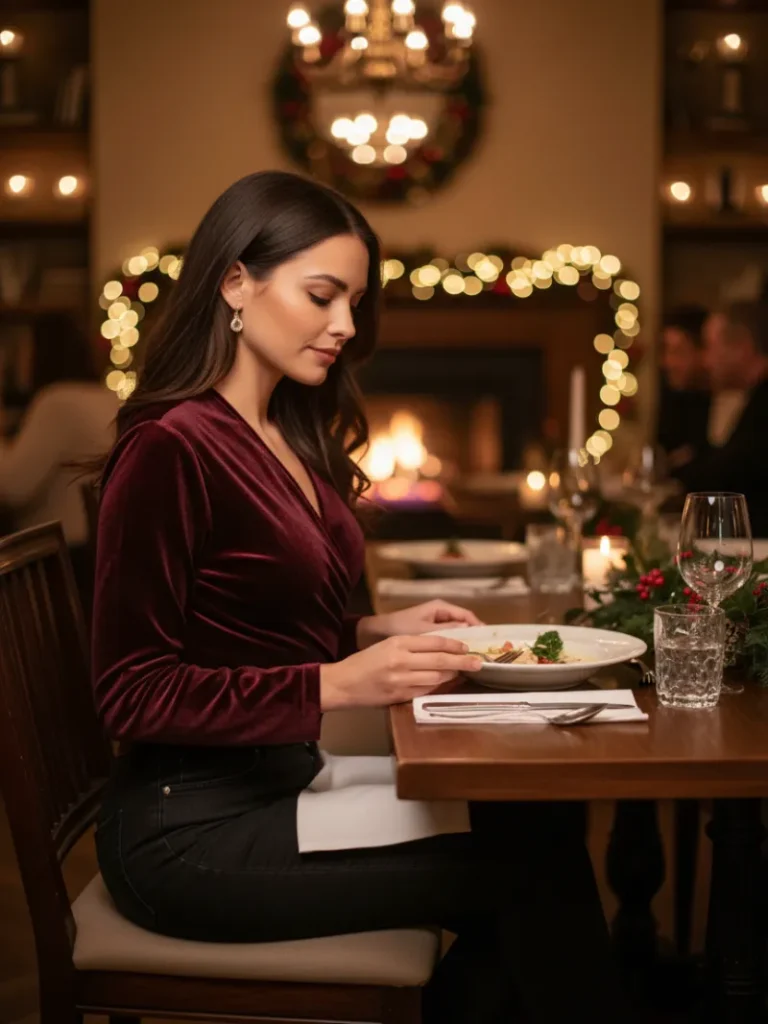 When it comes to mastering a top 10 dinner outfit night classy winter casual look, introducing a touch of velvet is the most effective way to signal evening sophistication without feeling overdone. Velvet is the quintessential winter fabric, offering a rich, tactile experience that instantly elevates the simplicity of a pair of jeans. By choosing a velvet top, you are embracing a texture that captures the dim, romantic lighting of a restaurant perfectly, adding a subtle glow to your ensemble that feels both festive and refined. This pairing is ideal for those who want to look like they have made an effort while still feeling grounded and comfortable enough for a long evening of conversation.